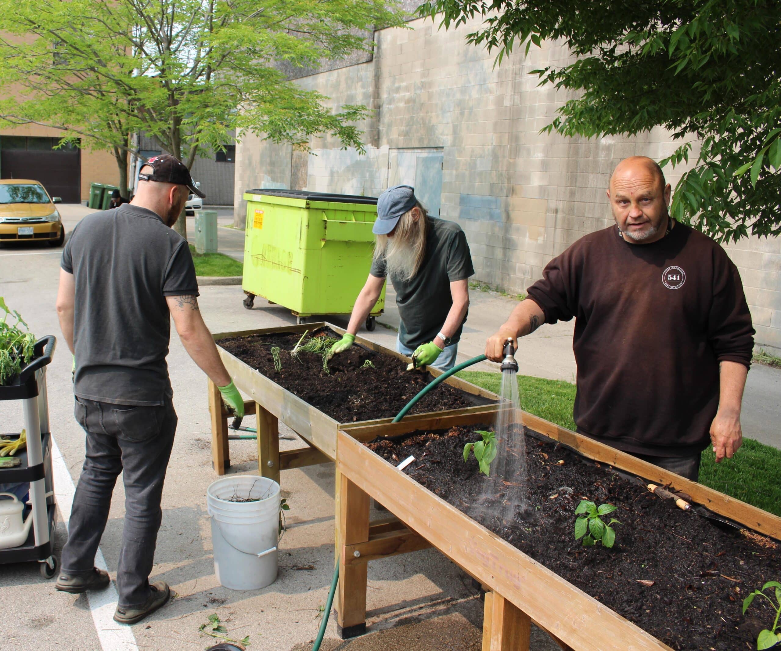 Tenants and staff at Indwell’s Perkins Centre work together to refresh the gardens—planting vegetables, pruning rhubarb, and connecting with nature and each other.